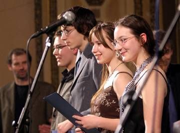 Společnost Člověk v tísni vyhlásila ve spolupráci s časopisem Respekt ... ...na podzim 2006 již potřetí literární soutěž v rámci projektu Jeden svět na školách. Letošní téma znělo – „ČSSR v roce 2006“. Porota vybírala ze 135 prací žáků středních škol z celé republiky. Vyhlášení výsledků bylo součástí slavnostního zahájení festivalu Jeden svět 2007 ve středu 28. února v pražské Lucerně. Vítězem se stal Vratislav Maňák, student oktávy stříbrského gymnázia, se svou fiktivní reportáží „ Praha má nové obchodní centrum“. blíže na http://www.respekt.cz/extra/Literarni-soutez/Literarni-soutez-2007.html Ocenění autoři na pódiu pražské Lucerny. V. Maňák první zleva. Dne 04.03.2007:PhDr. Jana Kutná Pro reakci na článek musíte být přihlšen |