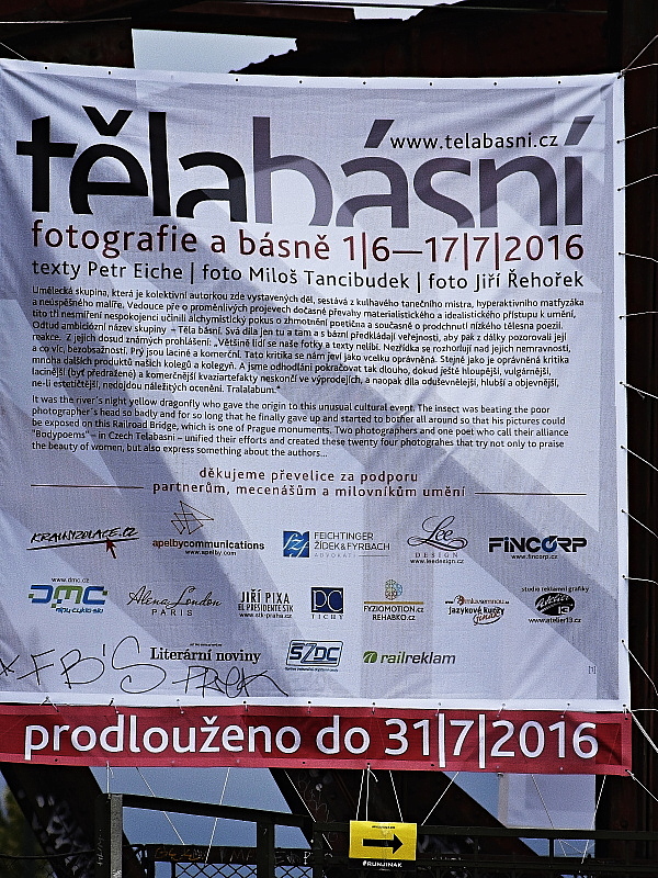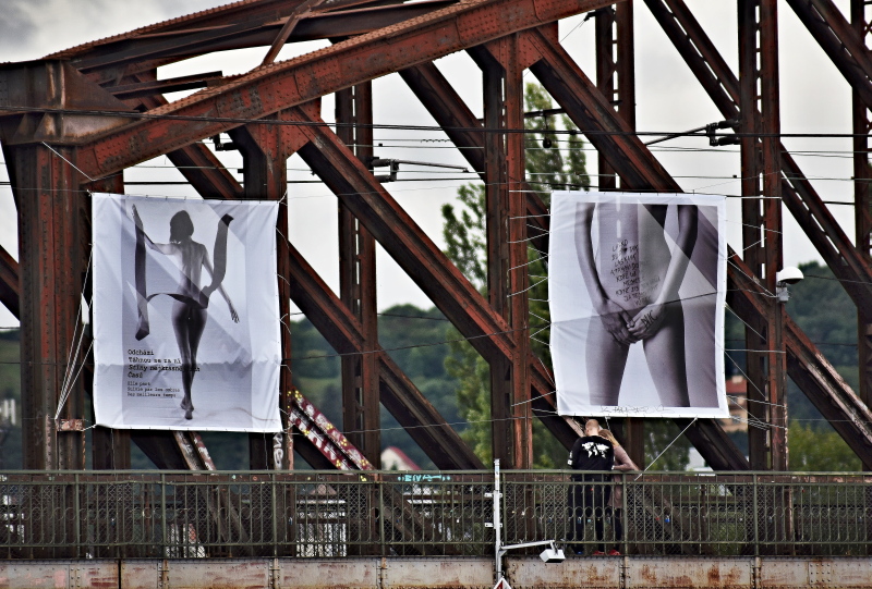 ... není to ovšem nic pro prudéry. Dlouho jsem jí hledal. Jedinečnou vyjímečnou výstavu. Výtvarné fotografie, poezie, takovou, že kliďo zapomenete na oběd, a čas se rozmázne v neurčito.. Už z dáli Vás upoutá. Největší galerie Evropy. Snad. Galerie na rezavějícím Železničním mostě.. Neskutečnej nápad, úžasné foto, syrová poezie. Tahle tvůrčí skupina se nejmenuje Ztohoven ( Z toho marasmu okolo nás ven), ale určitě jsou to jejich kámoši, výtvarníci. Mladí výtvarníci.. Instalace samotné výstavy, obří formáty cca 2x2 metry i víc, zajištění proti větru, vandalům, atak, je samostaným odvahudícím počinem! Ty fotografie mají několik rozměrů nejen v těch metrech, jinak je vidíte zdáli, jaksi v celku, jinak z blízka, kdy jedinečným nápadem průsvitné tkaniny vidíte i pozadí rezivějící konstrukce mostu i panorama Vyšehradu. O hudební doprovod se postará hukot vláčků a mašin a také milenci zamykajíce svoji lásku pevným zámkem k rezavé konstrukci mostu. Úžasnou atmosféru umocňuje skutečnost, že davy a konzum zůstaly kdesi v dáli na Karlově mostě, zde je klid a pohoda, tak akurád k zamyšlení a rozjímání... Nakonec aby téhle jedinečnostï nebylo dosti. Tahle výstava je zadarmo. Skutečně. Neskutečně. Pro radosti. Pokud jedete do Prahy určitě se tam stavte, pod mostem i světe div se, zaparkujete.. A nezapomeňte si sebou vzíti zámek. Tedy pokud máte lásku. A zamkněte si jí k rezavějícímu železnýmu železničnímu mostu. Jako mnozí před Vámi.. Však víte, stará láska nezrezaví.. Výstava prodloužena do 31.7.2016 ! Praha, Podolí, Železniční most. A dost. Dne 21.07.2016:Jan Picka 29.07.2016 - 21:34:07 onza - Umělecká skupina - Těla básní-(podle vzoru básník básní) byla založena v roce 2005, což je více nežli 10 let výrazné tvůrčí práce.Fotografie a poezie. Každoročně skupina vydá jakési výstavní album a jak sami říkají, se postupně dostali k tomu -něco říct-,tzn. vyjadřovat se skrze to,co tvoříme. Za dobu své existence uspořádali několik výstav (QUADRIO Praha, Vinohradský pavilon Praha, Kulturní dům Neratovice...zatím největší a ojedinělý počin Železniční most Praha právě končí, jejich snem je Eifelovka V Paříži...Londýn.. Jak sami říkají- většině se naše fotky a texty nelíbí,Nezřídka se rozhorlují nad jejich nemravností a co víc bezobsažností.Prý jsou laciné a komerční..tato kritika se nám jeví jako oprávněná... V době internetového šílenství,kdy je běžně dostupné každému děcku tvrdé porno, to nikoho nepohoršuje,ale ladné, decentní harmonické křivky, hra světel a stínů a moudro syrových textů a básní,jichž by kolikráte ani nebylo třeba,neboť těla básní sama. Jeden text je však velmi silný i sám o sobě, bez jakékoliv fotografie,říká se tomu paradox. Paradox umění. Je vlastně i potvrzením toho, že právě tohle je také umění současnosti.. - Jsem stále na příjmu Čísla mrtvejch kamarádů Nechávám si v mobilu- ------------------------------ Petr Eiche Doktor, Mistr Mili Tanzig Tamlbach,Otec Řehoř Pro reakci na článek musíte být přihlšen |