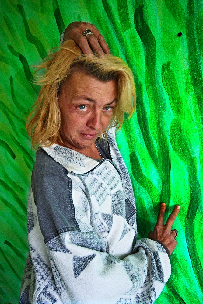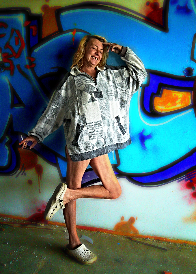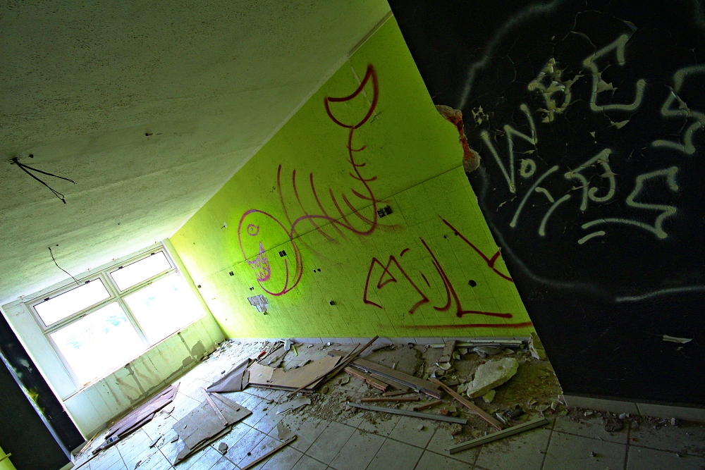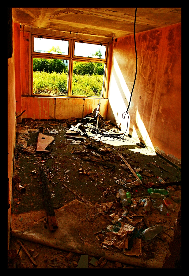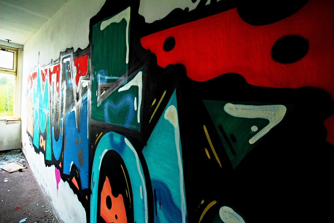 .. ..Divné. Bylo to celé divné. Přemýšlel jsem zda uvedené fotografie vůbec uveřejnit. Ale dostal jsem výslovný souhlas, nejen s focením, ale i se zveřejněním. Jednou se tam vrátím.Vrátil jsem se. Najednou, bylo asi 13 hodin dne 29.8.2016, se náhle zatmělo a zahřmělo...jakobysi temný síly řekly A DOST.. ...................................... Ten pozdně letní den bylo po dlouhé době oblačno a občas se i mračno zamračilo. K Aeru jsem jel cíleně, potřeboval jsem tam dovyfotit některé scenérie, které v hodně pozdním odpoledni prostě navyšly.. bylo bezvětří, a v dáli jsem viděl malý tmavý bouřový mrak, však je dosti času, pomyslíte si, slunce svítilo a ... ...Přiznám se, neměl jsem z toho dobrý pocit, už posledně jsem cítil Ty děsivé siločáry zla zhmotněné mezi jednotlivými grafitti, ta jejich negativní energie jakoby se propojila, byla příliš silná na to aby ji mohl rozbít jediný člověk, však je také jediný člověk nevytvořil, přesto jsem Je poznával, jak jsem postupně procházel jednotlivá bezútěšná podlaží této rozlehlé budovy, jaksi si uvědomíte, že tenhle divně zlej prostor prostě sami nezvládnete, i když to tu už skoro znáte.. potřetí jsem určitě nepůjdu, ani za nic... Náhle se sešeřilo a setmělo. Náhle zahřměl hrom. Docela blízko. Udiveně se ohlédnete. To není možný, řeknete si, vždyť ten mrak byl tak daleko. Další zahřmění, náhle se zattmělo ještě víc... Uvědomíte si, že tohle už není normální bouřka, žádnej vítr, žádnej déšť. Jakoby všechny síly zla vycházejíce z grafitti vymalovaných do vomítek temnými silami lidské duše, řekly a dost, nemáš tady co dělat člověče.. . V temné sešeřelé chodbě ponuré budovy se najednou v dáli něco pohnulo. zamraZÍ vÁS. Objevila se temná silueta postavy. V temným prostoru.. Zamrazí Vás DOOPRAVDY, je to opravdu děs i pro velkýho mužskýho. Nikde nikdo. Ani se nepohnete..možná znáte ten pocit mrazení, kdy se Vám celý tělo chvěje a neuděláte Nic. Postava se pohnula. Pomalu se mlčky blížila... Pomyslíte si ledacos. .. taky Vás napadne, že o Vás vlastně nikdo neví, že jste právě tady v tom děsuběsu. Sahnete podvědomě po mobilu. Není signál. To není možný.. Tajemná postava, když už jsem v přítmí rozeznával její obrysy byla ... ...menuju se Niki, slyším najednou skřehotavý hlas, který s ozvěnou pronikl děsným potemnělým vopuštěným prostorem, co tady děláš ? Ta děsivá postava byla ONA, žena... soorrryi ,.. dal se jí cigárrroo. nekouřim, měl se je pro sichrr ssebou.. zapálila si. i... mi, bidleli sme tady. kdisi. s tim mým. sem fotografka. bejvalá. bejvala. sem teď tady. zimu nepřežijem. dík že si přišel. můžeš fotit. a kde to bude? na www. stribro.cz je, to si budu pamatovat... ... .. .