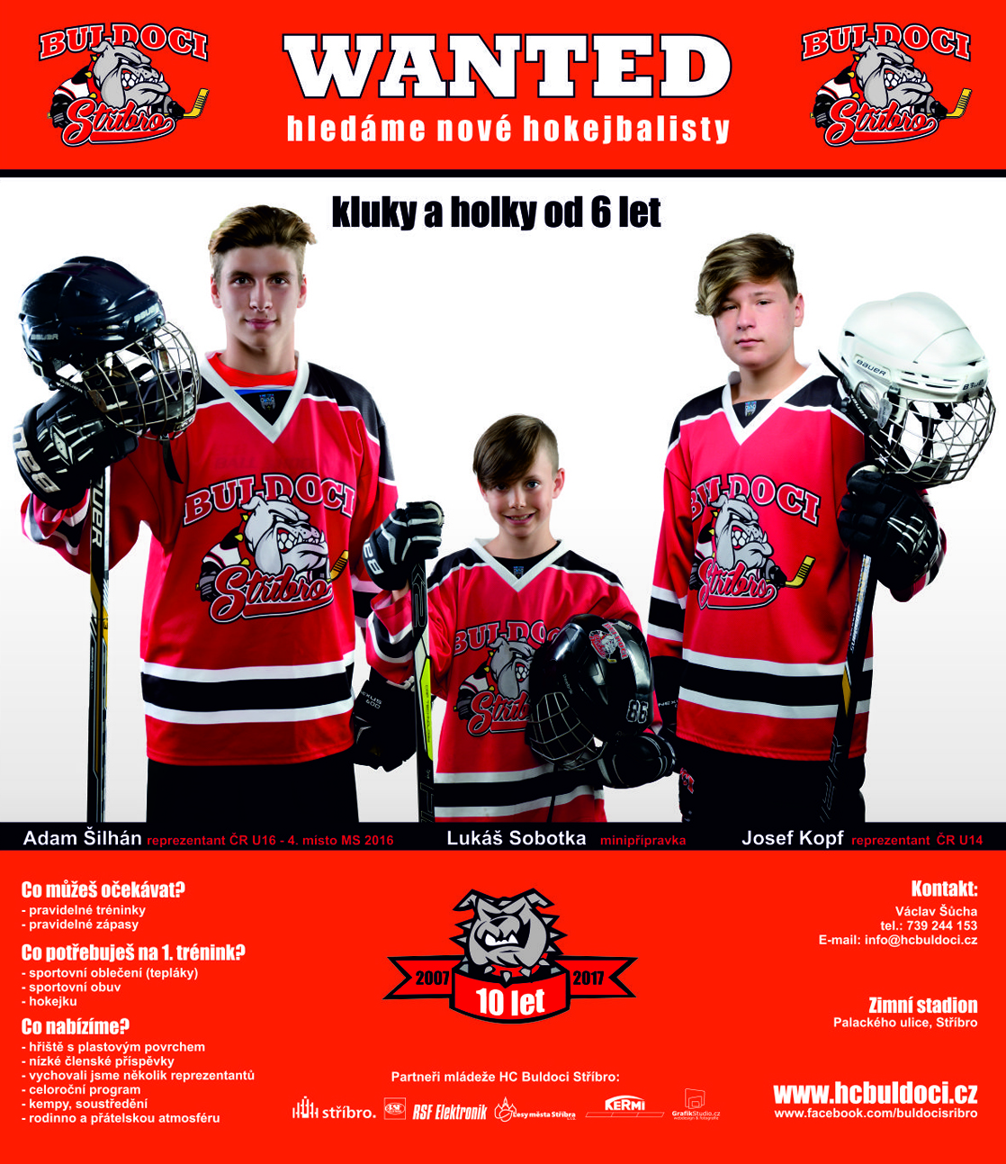 HC Buldoci Stříbro hledají nové hráče do všech kategorií Zveme mezi nás holky, kluky od 6 let, kteří mají rádi hokej, ale z různých důvodů si ho nemůžou dovolit hrát. Hokejbal je nejpodobnější alternativa hokeje s tím rozdílem, že se v hokejbalu používá míček. Místo bruslení se běhá. Stříbrští Buldoci se věnují hokejbalu od roku 2010 a vychovali několik hráčů, kteří se dostali do juniorských reprezentací. V sezóně 2016/2017 nastupují s minipřípravkou do regionálního přeboru, mladšími žáky do přeboru Čech, mladším dorostem do Extraligy MD a muži do 2. NHbL. Co potřebujete, abyste mohli začít hrát? Hokejku, helmu, rukavice, sportovní obuv. U minipřípravky je možné na kratší dobu si výbavu zapůjčit. Bližší informace získáte na tréninku nebo na tel. 739 244 153. Těšíme se na vás.