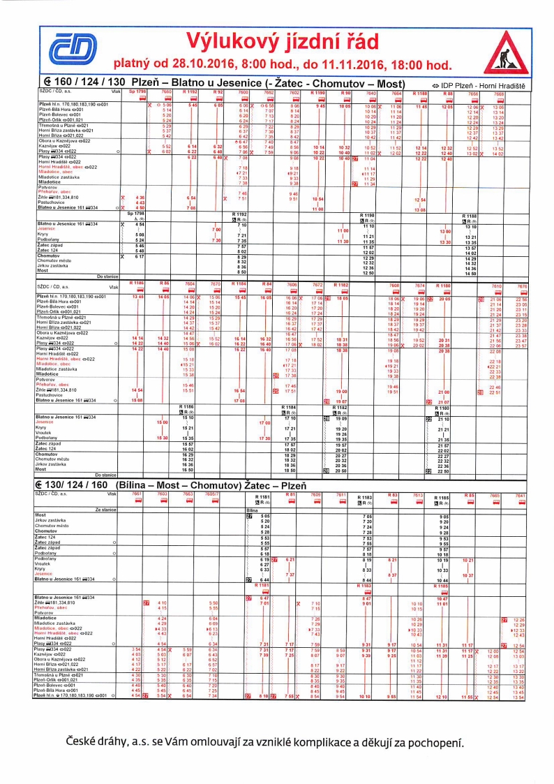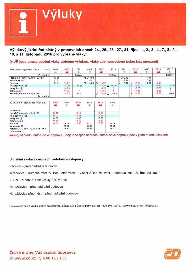 Přehled výluk ČD na 45. týden