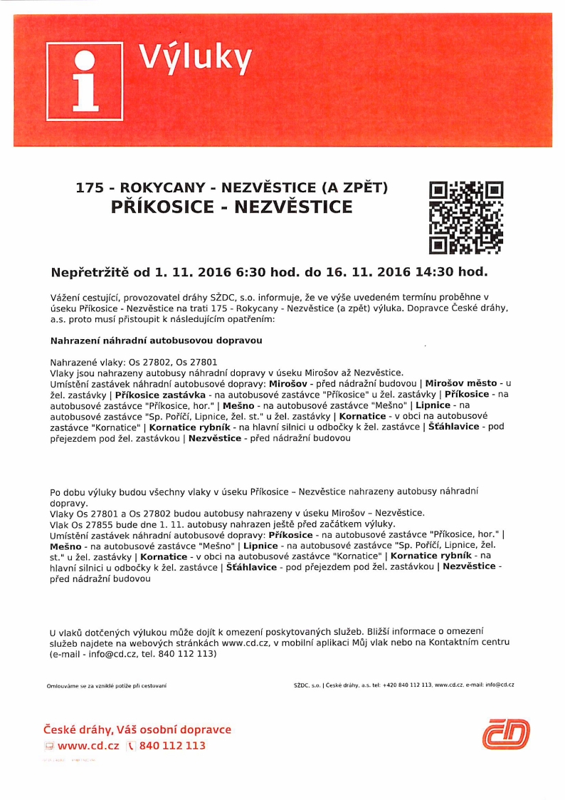 Informace Českých drah, a.s.