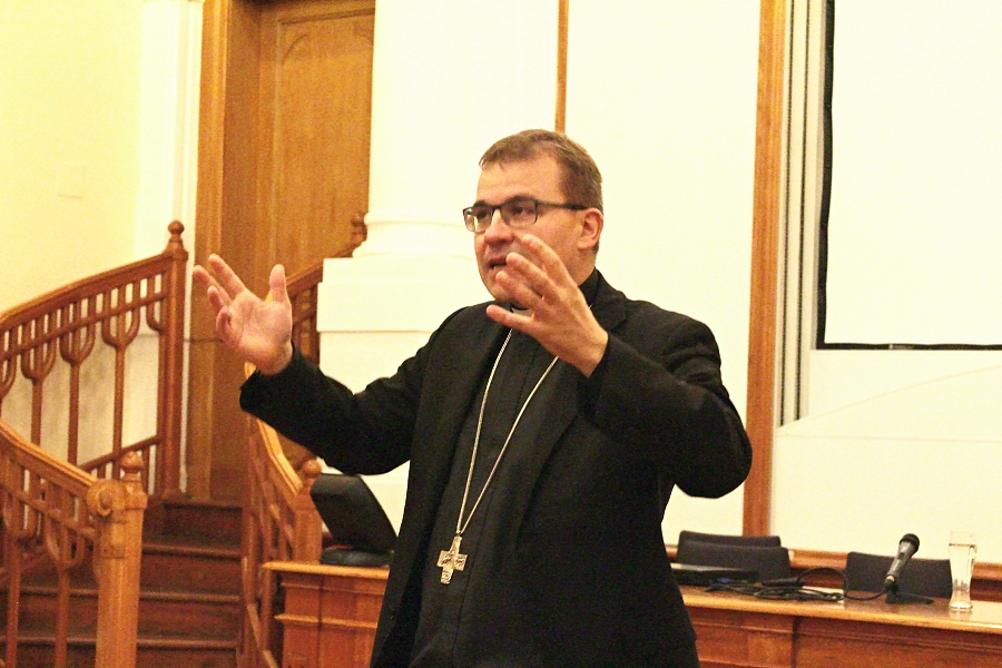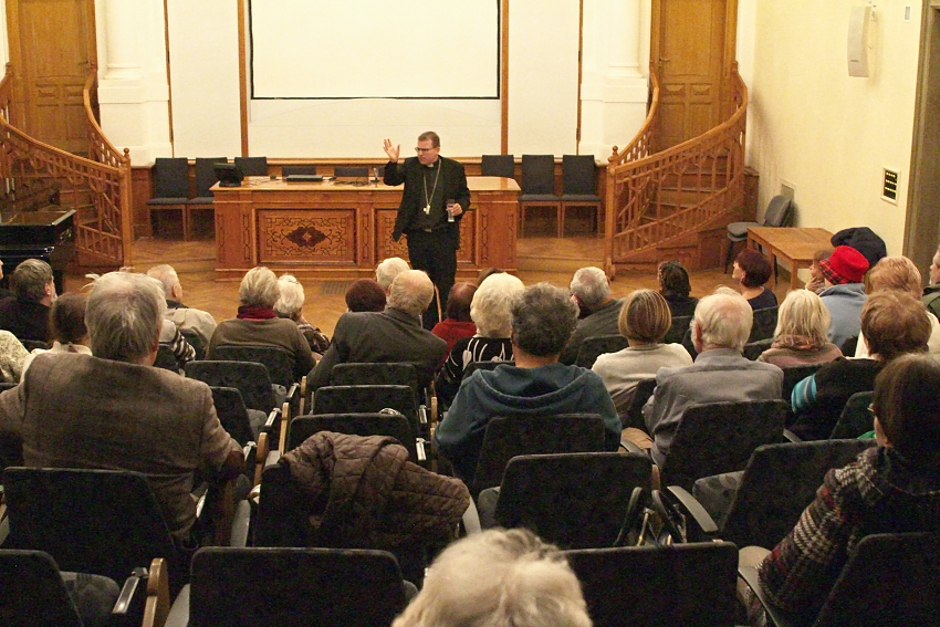 Včera proběhla v hlavním sále Západočeského muzea velmi zajímavá přednáška Mám rád přemýšlivé lidi, a to i mezi křesťany. Jedním z nich je bezesporu plzeňský biskup Tomáš Holub. Když včera zavítal ho hlavního přednáškového sálu Západočeského muzea přišel v civilu. Však také muzeum není žádná katedrála, i když... , šel hnedka dopředu mezi nás, žádnej akademickej vodstup, přivítal i emeritního biskupa Františka Radkovského.. Jeho přednáška, která začínala úderem 17 hodiny, byla velmi zajímavá, obsáhlá, podrobná a dala posluchačům odpovědi na mnohé otázky, i když ne na všechny. Biskup Tomáš se vlastně zabýval celými dějinami novověku, filosofií a etikou vzniklých konfliktů a válek v dějinách lidstva, oprávněnosti vésti válku jako obranu vůči násilí a k ochraně života svěřených obyvatel státu, hovořil třeba o tom, že se v Bibli píše když Tě ( křesťane) někdo uhodí, nastav mu i druhou tvář, není ovšem možno toto aplikovat a požadovati tohle samé i po svém bližním za kterého nesu zodpovědnost..proto jej mám právo bránit.. Vysvětloval i pojetí rozdělení moci v odbobí dlouhého středověku cca od roku 300 našeho letopočtu do 13 století, dále se dlouze věnoval o období vlády Karla IV, jehož výročí si v letošním roce připomínáme.. samozřejmě se zabýval i dějinami 19. a 20. století i naší současností, i terorismem a s ním spojení vzniklé nenávisti mezi částí muslimů a západním světem.. přednáška byla natolik zajímavá a dále proběhlá diskuze hlavně o současných problemech našeho globalizací propojeného světa, že se protáhla z plánovaných 45 minut na téměř dvojnásobek.. Všichni posluchači pana biskupa za jeho zajímavý a obsáhlý výklad odměnili dlouhotrvajícím potleskem.. Biskup Tomáš Holub(1967) je bývalý první vojenský kaplan v moderních dějinách armády České republiky.Zůčastnil se několika zahraničních misí. V současné době je i poradcem ministra obrany... Dne 23.11.2016:Jan Picka Pro reakci na článek musíte být přihlšen |