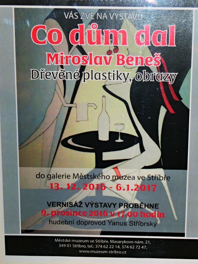 Co dům dal je název výstavy, která se již tradičně koná v galerii stříbrského muzea. Obrazy a dřevěné plastiky pana Miroslava nám ukazují velikou šíři výtvarného umu autora. Jeho obrazy se pohybují
