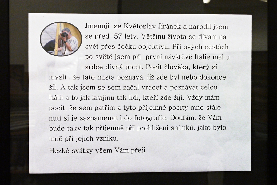 Vernisáží začala včera v adventně vyzdobené stříbrské Městské knihovně výstava fotografií pana Květoslava Jiránka Pan Květoslav Jiránek (1959) je nejenom fotograf,president Stříbrského fotoklubu, ale také syn, otec a děda..zahájil včera v 17 hodin vernisáž své výstavy fotografiií -z milované Italie-. K vidění jsou zde nejen italské krajinné scenerie, jež nám ukazují bohatost a kulturu tamějších obyvatel, ale i romantická zátiší a, ..a Street. Všechny fotografie sídlí v pěkných rámech, které jenom vyzdvihují vyváženost, pěknou obrazovou barevnost a kompozici autora. Kdo si myslí, že fotit krajinky je jenom tak, tak se velice mýlí! Pokud se začnete vážně zabývat jakýmkoliv oborem fotografie, zjistíte, že čím o tom více víte, tím stoupají Vaše nároky a tím je to těžší.. Květoslav nám divákům vysvětlil i prozradil mnohé o vystavených fotografiiích a také návštěvníci vernisáže, mezi nimi i někteří fotografové, si měli pořád o čem povídati. Inu bylo o čem. Panu Milanovi se třeba velmi líbilo zátiší s demižony, krásně nasvícené a odrážející okolní architekturu, inu Italia.. Pouliční fotografie s přidanou hodnotou autora panu Jiránkovi vyloženě jde, nakonec bylo to vidět i na jeho předchozích výstavách. Nejlépe bych hodnotil fotografii Motorkáře, která je zde uvedena jako předposlední, pozorně se na ni podívejme, nejenom osobitý styl retra, včetně všech detailů oblečení brýlí i rukavic a samotného motorkáře ,ale všimněte si i dívky v pozadí, naprosto dokonalé ! Na zahájení vernisáže zahráli nadaní hudebníci stříbrské ZUŠ pod vedením pana učitele Matějky, vernisáž zahájila vedoucí knihovny paní Solová.. Výstava je otevřena denně v provozních hodinách knihovny do 31.1.2017 Dne 16.12.2016:Jan Picka Pro reakci na článek musíte být přihlšen |