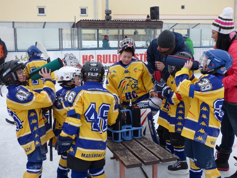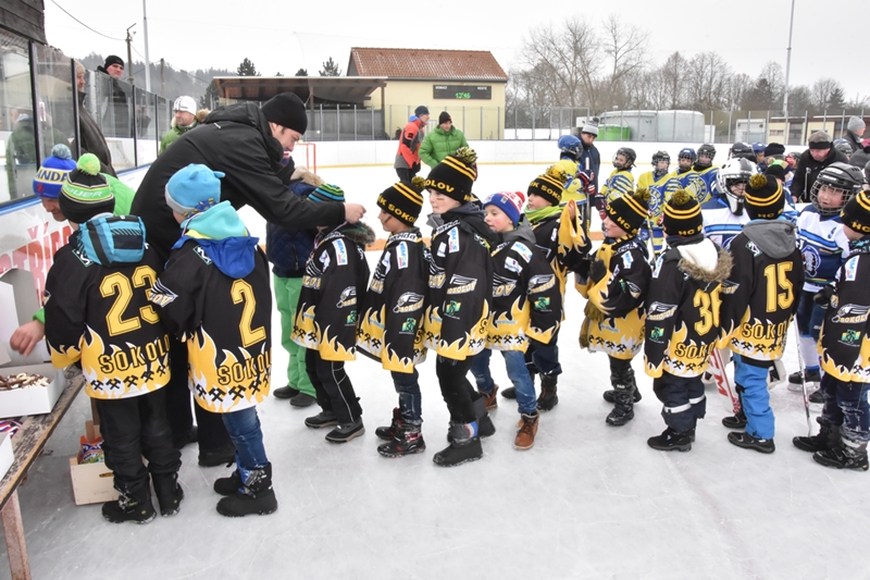 Účastnili se hokejisté HC TACHOV, HC METEOR TŘEMOŠNÁ, HC BANÍK SOKOLOV, HC MARIÁNSKÉ LÁZNĚ a HC ŠKODA PLZEŇ, která dokonce vyslala dva týmy. Po nástupu všech týmů na ledovou plochu proběhlo slavnostní zahájení, které provedli starosta města Stříbra pan Bc. Karel Lukeš a prokurista lesů pan Vladimír Souček. Následovalo rozlosování týmů do dvou skupin. Poté se již mladí hokejisté připravili na první zápasy. Rozlosování: Skupina A HC ŠKODA PLZEŇ 1, HC TACHOV, HC METEOR TŘEMOŠNÁ. Výsledky jednotlivých zápasů: HC METEOR TŘEMOŠNÁ - HC ŠKODA PLZEŇ 1 7:2 HC TACHOV - HC ŠKODA PLZEŇ 1 13:0 HC ŠKODA PLZEŇ 1 - HC METEOR TŘEMOŠNÁ 0:18 Pořadí ve skupině A: 1. HC METEOR TŘEMOŠNÁ 2. HC TACHOV 3. HC ŠKODA PLZEŇ 1 Skupina B Do skupiny B byly vylosovány týmy: HC ŠKODA PLZEŇ 2, HC MARIÁNSKÉ LÁZNĚ a HC SOKOLOV. Výsledky jednotlivých zápasů: HC ŠKODA PLZEŇ 2 - HC SOKOLOV 1:3 HC MARIÁNSKÉ LÁZNĚ – HC ŠKODA PLZEŇ 2 0:8 HC SOKOLOV - HC MARIÁNSKÉ LÁZNĚ 0:1 Pořadí ve skupině B: 1. HC ŠKODA PLZEŇ 2 2. HC SOKOLOV 3. HC MARIÁNSKÉ LÁZNĚ V malém finále se utkaly týmy HC TACHOV a HC BANÍK SOKOLOV. Třetí příčku vybojoval po výhře 7:5 jediný zástupce Tachovska – tým HC TACHOV. HC BANÍK SOKOLOV se umístil na místě čtvrtém, páté místo obsadili hráči HC MARIÁNSKÉ LÁZNĚ. Šestá příčka patřila Plzeňské 1. Finálové utkání svedlo proti sobě hokejisty Třemošné a Plzně 2, kteří byli nadšeně povzbuzováni diváky, rodiči i hráči ostatních týmů. Výsledek utkání 3:3 naznačil, že se bude ještě pokračovat, a po domluvě obou finalistů s pořadateli došlo na samostatné nájezdy, ve kterých byli úspěšnější hráči Meteoru. Závěr hokejového dne přinesl vyhlášení vítězů turnaje. Pro zúčastněné týmy byly připraveny poháry a diplomy, všichni hráči získali medaile a navíc si každý tým odnesl sladkou tečku – pytel bonbonů a dorty, které věnovala CUKRÁRNA ORANGE CAFE. Celkové pořadí - 3. ročník turnaje přípravek ledního hokeje pro ročníky 2009 a mladší „O pohár Lesů města Stříbra“: 1. HC METEOR TŘEMOŠNÁ 2. HC ŠKODA PLZEŇ 2 3. HC TACHOV 4. HC BANÍK SOKOLOV 5. HC MARIÁNSKÉ LÁZNĚ 6. HC ŠKODA PLZEŇ 1 Přesto, že pořadatelé měli z dětské „WINTER CLASIC“ na otevřené ledové ploše obavy, počasí nakonec bylo ledovým hrám nakloněno a mráz malé hokejisty snad moc nepotrápil. Poděkování patří také TJ Baník Stříbro za poskytnuté zázemí - šaten, a rozhodčím, kteří na ledě vydrželi celý den a odpískali všechny zápasy. Akce určitě splnila svůj účel a děti si hokej užily a ze Stříbra odjížděly s novými zážitky. Dne 30.01.2017:Zdeňka Kantová Pro reakci na článek musíte být přihlšen |