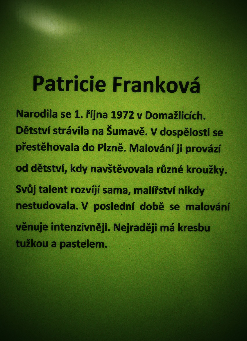 zahájila včera vernisáží svojí první výstavu Galerie u Sv. Jiří v Plzni byla včera celá slavnostně nasvícená. Vlastně to byl takový svátek, vždy když malíř(ka) vystaví svoje obrazy je to pro galerii svátek, jinak jsou to přece prázdné stěny a zdi nedělají galerii, stejně jako baráky město... Paní Patricie Francová je malířka, která maluje,ale hlavně kreslí. O kresbě už jsem tady psal, patří mezi těžké disciplíny malířství a vyžaduje nejenom perfektní souhru očí a rukou,ale také hlubokou vnímavou duši. Tu určitě Patricie má a je opravdu radost si ty Její kresby prohlédnout, jakoby občas si odejde k nějaké té malbě, jak je vidět na fotografiiích jedná se o portréty. Malovat portréty je těžké, jen si to zkuste, vypněte si displeje, vezměte si tužku a papír a namalujte si svýho, no bližního, poznáte nepoznané, bude to Váš čas a nikdo Vám nebude vnucovat ty sladkobolnokrvavěnapínavý děje prokládaný masivní reklamou a politikou... vždyť každý Váš život, Vaše bytí je jedinečné, zbavme se závislosti na mediích je to cesta do pekel deprese.. tohle naše milá malířka Patricie tohle už dávno pochopila a radostí ji naplňují nejen Její výtvarné představy,ale i to že může dělat radost nám divákům vnímatelům. Veliké díky ! A ještě něco. Když sem náhodou uviděl Její ruce, její dlaně, dlouhé štíhlé prsty musím říci, že jsem krásnější ruce ve svym dlouhym životě neviděl, jakoby její vnitřní já formovalo tyhle úžasné nástroje výtvarnýho cítění ,kterýho je schopna jenom žena. Malířka Patricie. --------------- Výstava je k vidění po celý květen a v Plzni Doubravce v galerii Domu Sv. Jiří, Mohylová ulice. Vstupné zdarma. Dne 03.05.2017:Jan Picka Pro reakci na článek musíte být přihlšen |