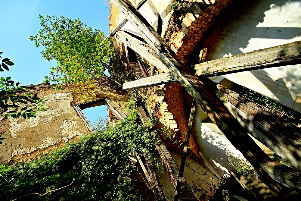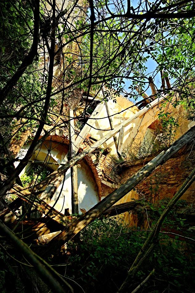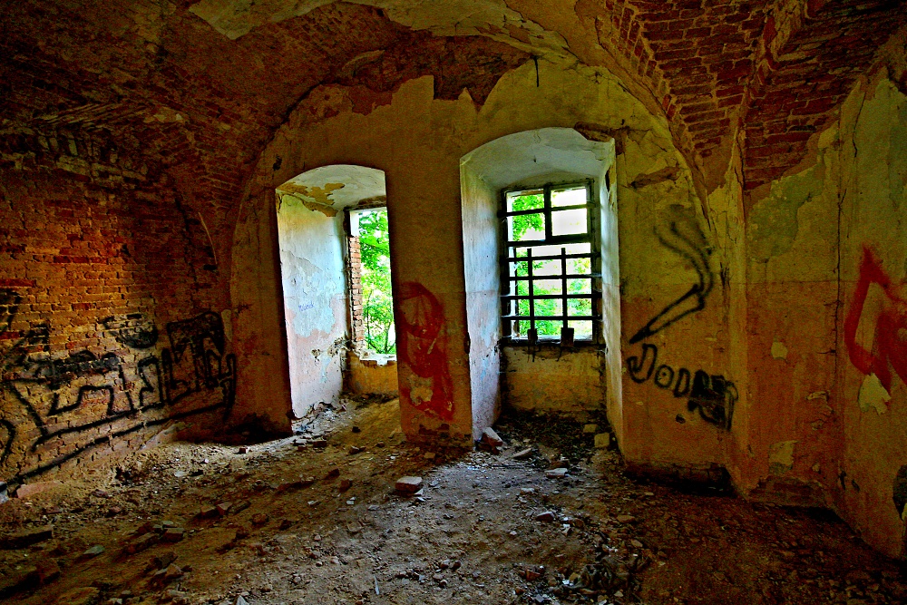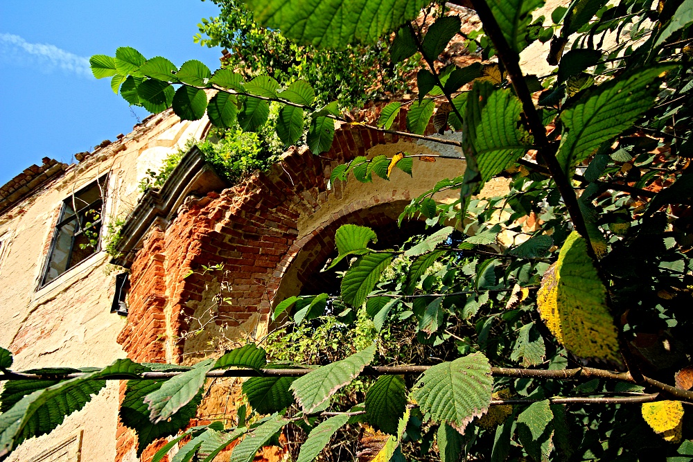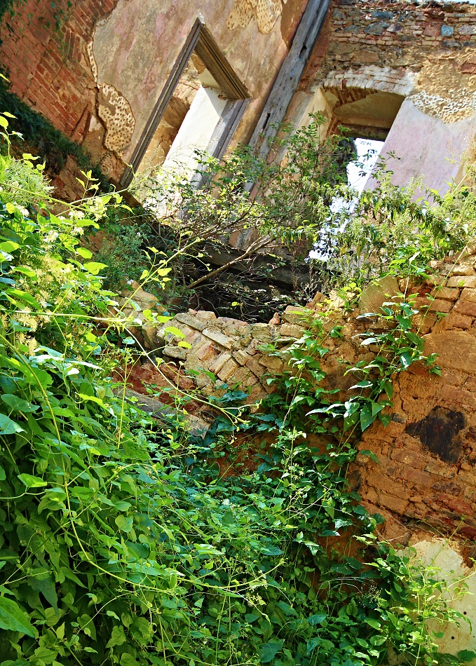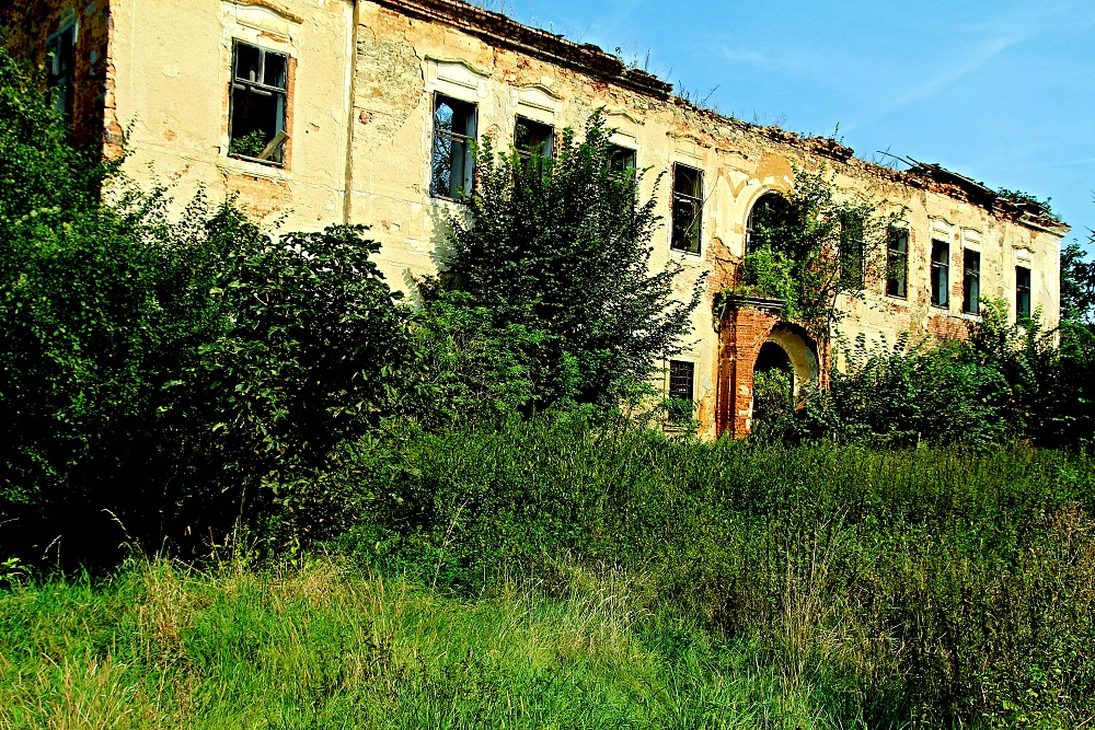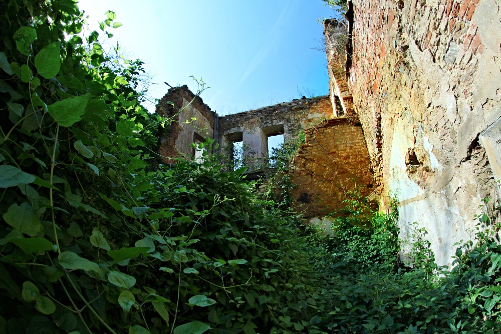 aneb zámek prokletej.. Na návštěvu zámku potřebujete: -staré džíny, nejlépe záplatované -pevné boty, nejlépe vysoké -košili nejlépe s dlouhým rukávem -ochranné brýle nejlépe plastové -ochrannou přílbu aspoň cyklistickou -repelent proti hmyzu -nadšení vodvahu a drzost -a taky nákej foták nejlépe starou zrcadlovu, novou nee.., budete se totiž plazit nejen po kolenou. Vesnička středisková na Plzni severu má vše co má správná ves míti, kostel,hospodu,Pneuservis,Dančí farmu,Smíšené zboží, hřbitov a, a taky zámek. Prokletej a zakletej. Největší štípák roku jsem ovšem slyšel od místního domorodce, prej, říkal majitel zámku a přilehlých nemovitostí, prej soukromník, prej nebude dělat novou střechu, prej to takhle chtěj památkáři, prej.. ..když hledáte v útulné vesnici zámek, prostě jej nenajdete.. za to po menším hledání nahoře na kopci,kam vede asfaltová cesta najdete hřbitov. Takovejhle hřbitov sem ale ještě nikdy neviděl, tohle nejni hřbitov, ale Arboretum,ale takovýhle arboretum sem ještě nikdy neviděl, ale takovejhle zámek prokletej sem ještě nikdy neviděl, strašidla si vypijou a pak vylézaj přímo ze zdí... Jakobyse tenhle hřbitov ani k tý vesnici nehodil. Jakobyse tahle vesnice ani k tomu zámku nehodila. Ale přece. Přece má hřbitov i zámek hodně společného...