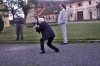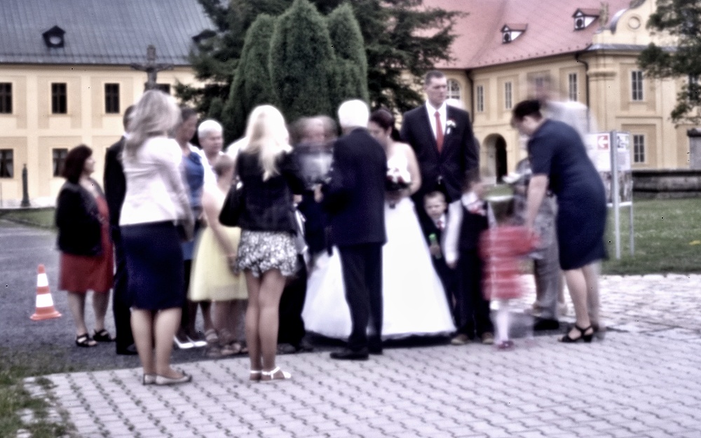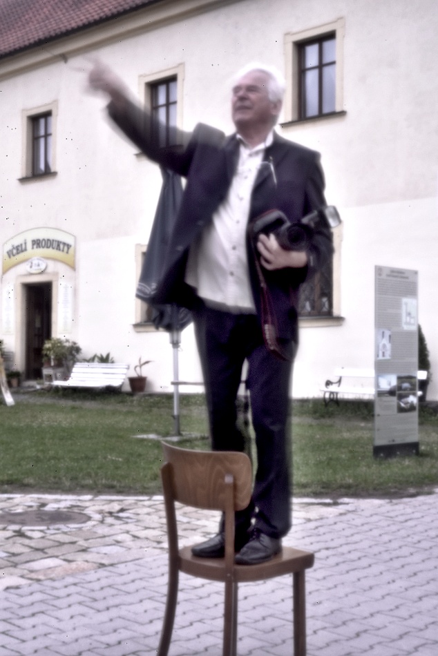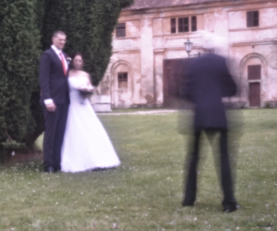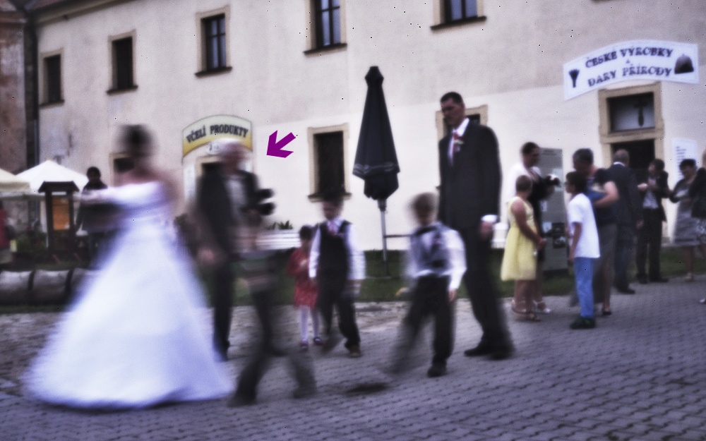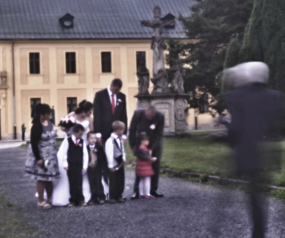 ...jakasi chechta scena, mohlo by se řici svatba s dirkou... Pinhole, neboli dírková komora je vlastně foťák bez objektivu tedy skla. Namísto objektivu, teda čočy, máte na fotaku dírku. Ale pozor. Dírka musí být opravdu dírka. to znamená malinkaá..vlastně si tenhle foták mužete urobiť sami, to dáte, stačí nějaka krabica a malinkata dírka, no a třeba fotopapier a taky nákej klobouček,kerym tu dirku odkryjete a zakryjete, ne nebojte závěrku nebudete potřebovat spíše nějaký ty stopky.. Bude se totiž jednat o dlouhý časy tedy minutovy, šak taky dirka je takova jako clona no 200.. na Vašem miláčkudigitaláčku máte clonu tak do 22,možno do 32 ale víc fakti ne.. no a mužeme jít na to, klobouk dolů... Stativ nemá nikdo moc rád, ale je to kouzelné zařízení. Udělá z Vas razem pana fotografa a můžete si na něj Vy hoši i balit holky.. spojeni digošu s dirkou je ovšem úžasná věc, potřebujete už jenom ten stativo, tu dirku a nákej ten motivo.. život přinaši fakti sceny,kery nevymyslite, ani nahodou, takova zkouška pinholi na nadvoři klaštera Tepla byla jednou z nich.. ..kdě se vzala ťu se vzala přihnala se svatba, teda horda s nevestou a ženichom a za nima uřicenej fotograf..teda profik..Zpočatku se mi nesměle ani nechtelo, ale stativ dodal amaterovi ono kouzlo profika, profikanyho, byl sem teda nervozni, misto vobjektivu dirku vogo, ani nevim jestli se to nejako vostři ta clona 199, iso 400,ale mačkam co to da, převracim stativa na vyšku když zaslechnu uřicenyho profifotogra bez stativu -přineste mi ˇˇnáku židlu kriči profik-.. mašinka mi hlasí minutovy expozice, jo to bude masakrrr .. -nemrrrkejte mi budu to mačkat čtyrrrykrát, vy tam vzadu podte dopředu,vy tam vepředu dete dozadu a vic k sobě, ale ne tolik mačkat, tak mačkam-.. -to bylo poprvé ty decka dejte vic dopředu a ta mamina za nevestu mackam podruhý,.. já sem teda mrknul povida bez mrknutí oka jeden potacejici se svatebčen za huronskeho smichu, ... no řeknu Vám přátele é , fotil sem co midirky dovolila tedy minuty bežely, fotograf na kymacejici se židli nespadl a bomba nakonec, když mi ženich povidá hledice na stativa, vy patříte s tim k sobě že ??? myslíce tím propocenyho profesionala fotografa.. -už to dělat nebudy tydle svatby to je fakt hrozný povida mi, když to skončilo..., ..jo akde si nechal tu čočku kukal neveřicne na tu dirku, a nakonec z nej vypadlo a Vy stě kdo ???