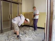 Jen tak pro ilustraci uvádím, jak byly tenkráte prováděny akce "Z". Na obrázku můžete vidět "silnou vrstvu" betonu, který byl na udusané zemině a na tomto betonu byla položena dlažba. Výška, jak vidíte, je něco málo přes polovičku výšky krabičky od sirek. Proto nebylo divu, že došlo po určité době k deformaci podlahy a houpání dlaždic.