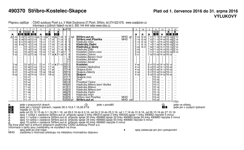 Informace o veřejné dopravě Z důvodu uzavírky silnice mezi Kostelcem a Ostrovem (nejprve z Kostelce po Alfrédov a poté od Alfrédova po Ostrov), která má trvat po celé prázdniny (1.7.-31.8.2016) budou linky 450662 a 490370 jezdit po objížďce, což přinese mimo jiné drobné časové úpravy, v některý případech i dřívější odjezd a pozdější příjezd spoje do cílové zastávky. Večerní spoj do Kostelce pojede jen v případě, že v autobuse bude nějaký cestující do této zastávky. Vratný sp...oj z Kostelce na rozcestí Ostrov veden nebude. V Ostrově budou autobusy zastavovat poblíže kapličky, bude-li tam vybudována provizorní zastávka. Pokud tam tato nebude, budou obsluhovat pouze zastávku Kostelec,Ostrov,rozc. Zastávky, které nebudou obslouženy: …a v případě, že nebude vybudována náhradní zastávka u kapličky, pak ještě zast. Kostelec, Ostrov v obci. Zastávka na rozcestí zůstane. Dotčené autobusové linky budou jezdit podle výlukových jízdních řádů, které zasíláme v příloze (zde je počítáno s tím, že v Ostrově u kapličky provizorní zastávka bude. Děkujeme za pochopení a jsme s pozdravem J. Šedivý, POVED s. r. o. Dne 07.06.2016:Jan Vačviric Pro reakci na článek musíte být přihlášen |