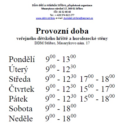 Veřejné dětské hřiště a horolezecká stěna DDM Stříbro, Masarykovo nám. 17