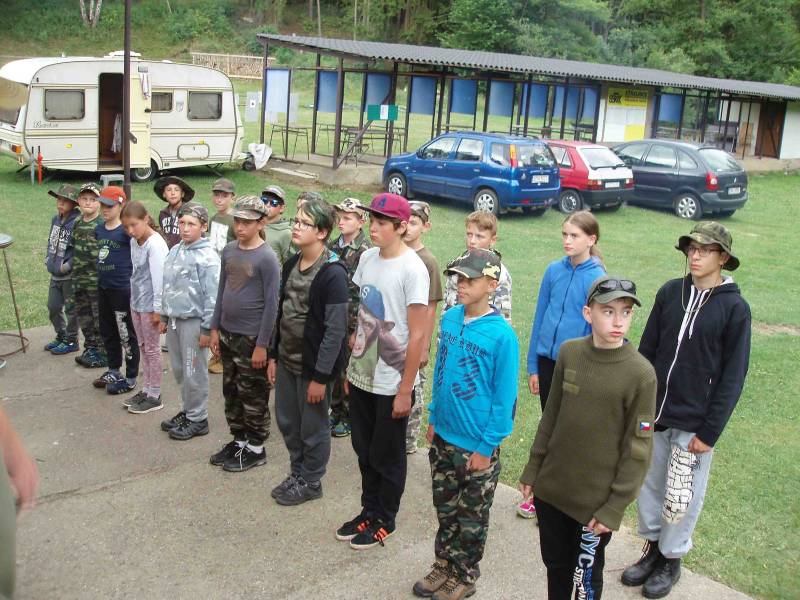 Již desátým rokem pořádal DDM Stříbro 10. 7. – 15. 7. 2017 střelecký příměstský tábor v přírodě. Tábor je určen pro členy střeleckých kroužků organizovaných na DDM. Náplní tábora je pestrý a zajímavý program navazující na celoroční střelecký výcvik. Děti tak mají možnost si vědomosti nabyté v kroužku ověřit prakticky přímo v terénu a naučit se něco nového v partě kamarádů a pod odborným dohledem instruktorů a vedoucích. Ti se po dlouholeté spolupráci na pravidelných přípravách akce vypracovali na velice dobrou partu. Táborové aktivity pro děti, které navštěvují tábor pravidelně každý rok, jsou průběžně obměňovány, aby si děti tábor vždy užily. Ani letos však nechyběla stavba stanů, uložení osobních věcí, každodenní rozcvička, dále příprava dřeva na oheň, vaření na ohništi, držení nočních strážních hlídek, práce s mapou a buzolou, zdravotní příprava (aplikace škrtidla, správné použití obvazů, fixace zlomenin, monitoring zraněného…), použití vysílaček v radioprovozu a sportovní hry (hod granátem, plížení na vytvořené překážkové dráze…). Nejvíce se ale všichni těšili na taktická cvičení - zdokonalování se v zacházení s airsoftovou zbraní, přebíjení, střelbu při plnění speciálních týmových úkolů…, na bojové akce v terénu, kurz přežití, maskování, na střelbu ze vzduchovek a malorážek na terče pod odborným dohledem, organizování nočních bojových misí. Nevadilo ani to, že nám počasí letos opět moc nepřálo a několikrát nás obdařilo i silnějším deštěm a nižšími nočními teplotami. Poděkování za přípravu her a cvičení na táboře patří instruktorům Maxi Hruškovi, Martinu Kastlovi, Vojtovi Leitgebovi a Marku Mundilovi, za zapůjčení dodávky a pomoc při přípravě bojové hry Ing. Danielu Vajdovi a za odbornou i technickou pomoc panu Zdeňku Kastlovi. Velké poděkování patří Kláře Kastlové, která se obětavě starala o zásobování tábora a dohlížela na průběh prací při přípravě stravy v polních podmínkách. A pokud vás činnost střeleckého kroužku zajímá více, přijďte se podívat v září do DDM Stříbro. Prohlédnete si vybavení střelnic a zařízení, kterými střelecký kroužek disponuje. Vyzkoušíte si praktickou střelbu laserem a podíváte se na fotografie a videa z letošního i předchozích táborů. Ti, kteří se tábora zúčastnili, si zavzpomínají na prožité dny a pro ostatní to může být inspirace k nástupu do střeleckého kroužku. Za vedoucí: Mgr. Klára Kastlová, Ing. Jaroslav Šimice