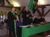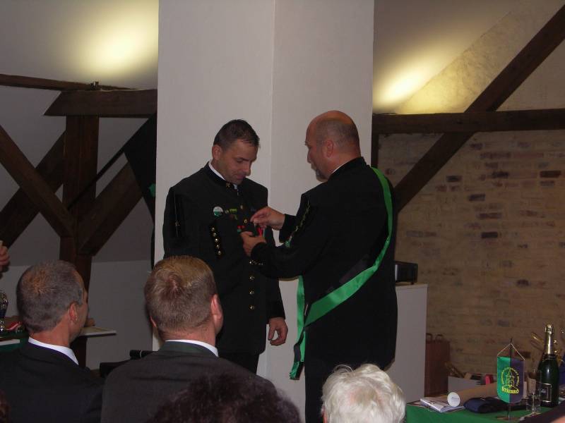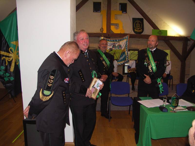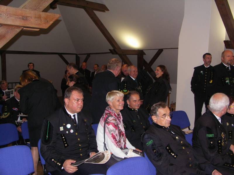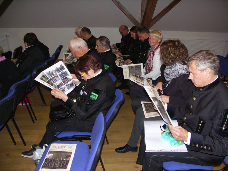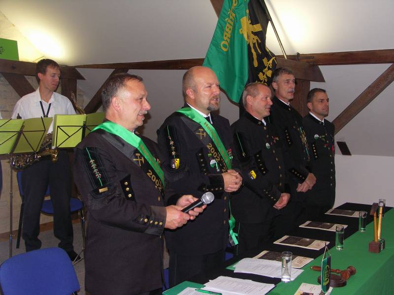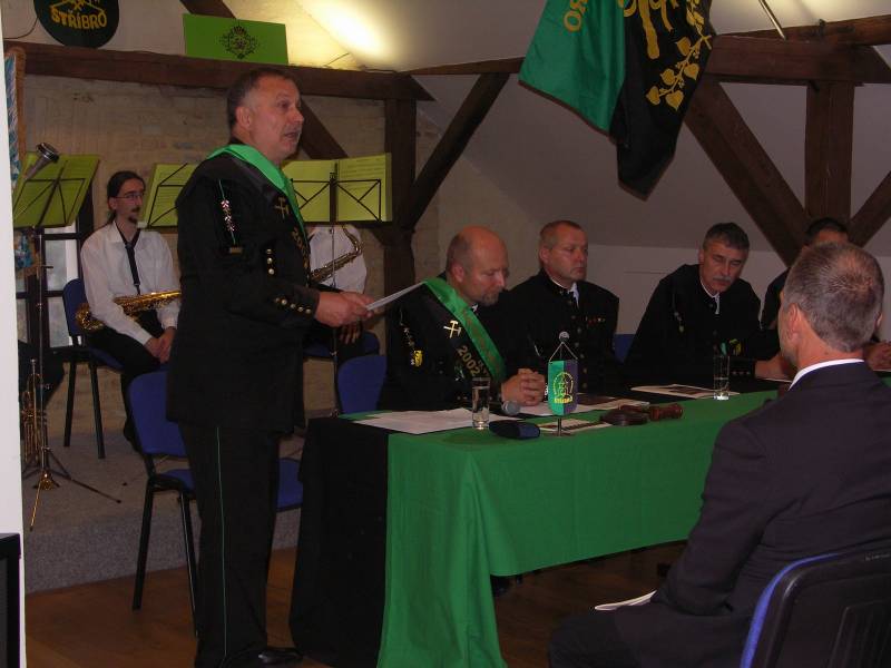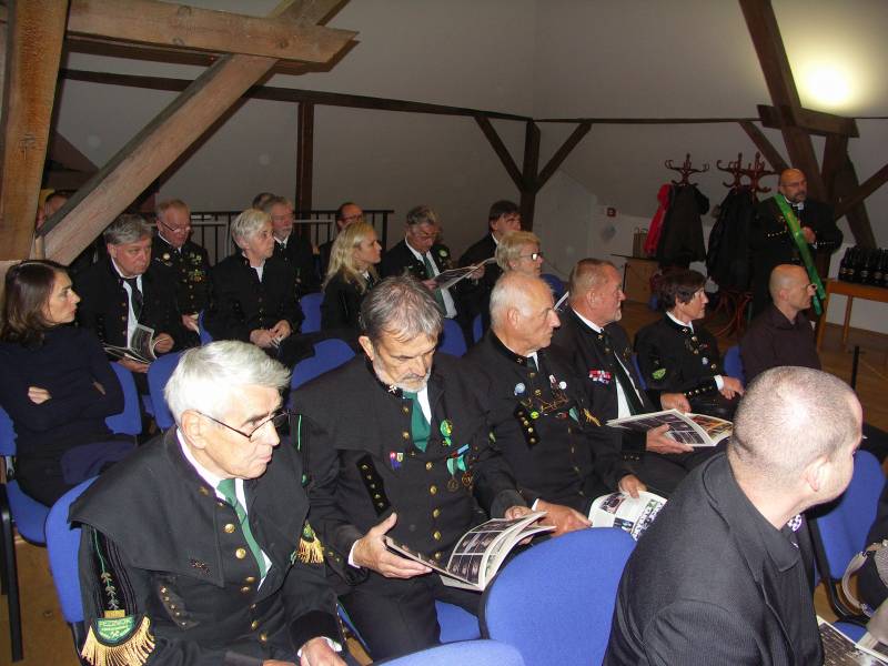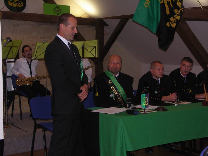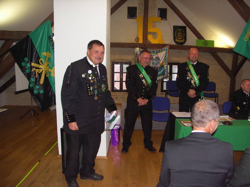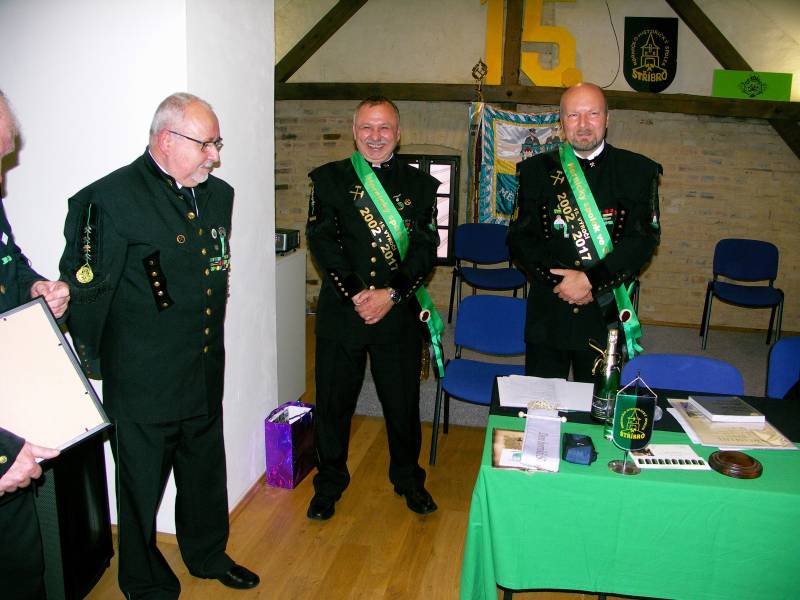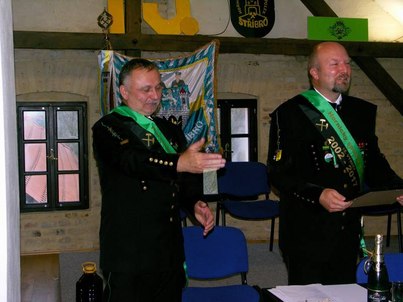 Členové hornického spolku se sešli v sobotním odpoledni ... v Městském muzeu ve Stříbře při příležitosti 15. výročí založení hornického spolku Pozvání přijali: místostarostové města M.Záhoř a V. Souček, Český báňský úřad M. Hakl, předseda OBU v Plzni B. Merc, ředitel DIAMO s.p. o.z. SUL v Příbrami Z. Skála, emeritní ředitel V.Plojhar a členové hornických spolků z Čech a zvláště ze Slovenska, předseda Združení banických spolků a cechů E.Somabathy, tajemník tohoto sdružení D.Vilím. Když jsme se před 15ti léty rozhodli pro založení spolku, vůbec jsme si neuvědomovali, co nás čeká za práci. Uběhlo neskutečných 15 let a my tady stojíme s Vámi, s o 15 let staršími, bohatšími na životní zkušenosti. Bohužel někteří z nás již mezi námi nejsou, musím je tímto vzpomenout - Josef Liška, Zdeněk Eyer, František Rabada, Ladislav Škopek, z ostatních spolků vyjmenuji jen některé, kteří k nám měli hluboký vztah Karel Škvor, Standa Opasek, Roman Makárius, Josef Suldovský, Koloman Ivánii). Úvodem si vzali slovo předseda spolku R. Strankmüller a místopředseda K. Neuberger. Následovalo odměňování a předávání vyznamenání zasloužilým členům našeho spolku (Jiří Vojta, Jaroslav Plecháč, Jindřiška Šrámková, Václav Krob, in memoriam Josefu Liškovi a dalším členům a ostatním přítomným za dlouholetou podporu (DIAMO, OBÚ, Nadace Landek a Město Stříbro). K poslechu nám zahrálo na trubky a saxofon trio Kovanda. Na památku si zástupci spolků odnesli pamětní talíř, glejt, stuhu k praporu a všichni přítomní 1 lahev ležáku uvařeného k této příležitosti. Kamarádi z Apolonie Nové Sedlo tohoto setkání využili k předání svých spolkových medailí pánům Strankmüllerovi a Neubergerovi, spolek Solles Chodov předal medaili Hornickému spolku a Nadace Jiřího Agricoly vyznamenala naši členku A. Neubergerovou. Po ukončení slavnostního aktu se přítomní odebrali do spodního patra, kde K.Neuberger Všem představil výtvor hornického spolku a to hornické pečetě a razítka. Podařilo se zrealizovat 210 kusů těchto razítek z období 17. století až dodnes. Hlavní téma jsou stříbrská těžařstva a cechy, Horní úřady Stříbro, Plzeň, Praha, Loket, Sokolov, Most, Č. Budějovice, Ostrava, Kutná Hora, Příbram a jiné. Je zde vystaveno i 15 kusů pečetí z mosazi (kopie originálů ze SOA Tachov). Velké dík patří Nadaci Landek, která svým finančním darem podpořila vznik tohoto díla, které svým tématem a jedinečností spíše patří do Hornického muzea. Program dále následoval hornickým pochodem k hornickému skanzenu za svitu loučí a světýlek přes hornickou stezku. Po posledních větách předsedy spolku byl odpálen ohňostroj. Akce doufám proběhla zdárně a kamarádi odjížděli do svých domovů plni zážitků a nových osobních setkání. V dějinách českého hornictví znamená 12. století první oficiální i neoficiální dochované písemnosti z rudných revírů českého království. Vedle starého stříbrského revíru postupně vznikají další a slavnější revíry, Jihlava, posléze Kutná Hora, či Jílové, nebo Horní Slavkov, Rudolfov, Planá, Jáchymov a Příbram a řada dalších. V místech bohatých nálezů rudních žil vznikaly hornické osady, které byly panovníky země povyšovány nejdříve na horní městečka a později na horní města. K povzbuzení dalšího hornického podnikání byly těmto městům udělovány různé výsady a zvláštní práva. Čeští králové ochotně vycházeli vstříc žádostem majitelů panství o povyšování na horní města. Panovníci potvrzovali horníkům jejich výsady a zároveň vylepšovali horním městům jejich pečeti a městské znaky. Od té doby se mnoho změnilo, místní doly již jsou jen dávnou vzpomínkou. Historii města spojenou hlavně s hornictvím udržují nadšenci. Troufám si říci, že velcí nadšenci srdcem, protože bez nich bychom zde nikdy neměli hornický skanzen ani zrekonstruovanou štolu Prokop. Všem, o kterých mluvím, tímto chci, já osobně, velmi poděkovat, protože vím, co osobního času, nadšení a rodinné podpory museli obětovat. Z bývalého počtu 90 členů spolku je nás již jen 44. Musím zde zase připomenout památnou větu, a to že: „Dějiny českého hornictví jsou vnitřně propojeny s dějinami země, tak těsně, že není možné je od sebe oddělit „. Děkuji za pozornost