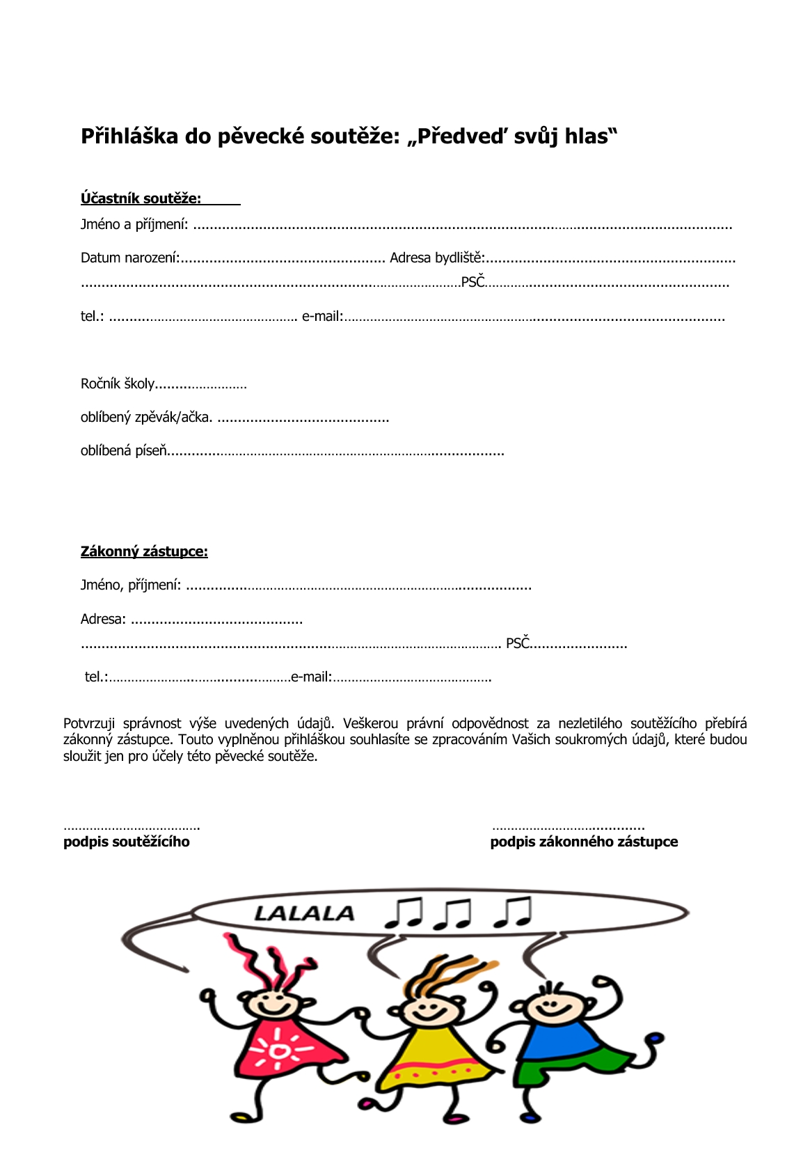 Ti, kteří se casting zúčastní, přinesou vyplněné přihlášky rovnou tam. Jen z organizačních důvodů prosíme předem krátké info na stejný e-mail, že se plánujete zúčastnit.