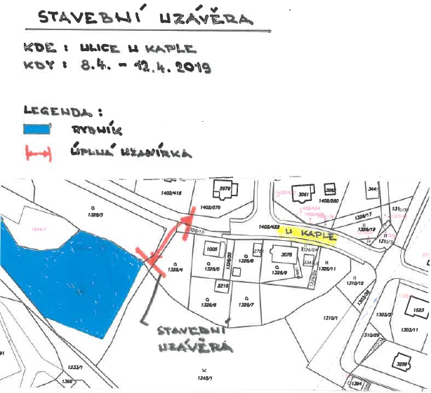 Vážení občané, Uzávěra bude provedena od čísla popisného 812 až k rybníku - viz. níže přiložené schéma. V této době nebude možná použít zkratku kolem mlékárenského rybníka. Uzávěra bude řádně vyznačena. Za danou komunikaci se omlouváme, ale vzhledem k bezpečnosti provozu a ochraně chodců je nutné uzavřít komunikaci v celé šířce. Dne 01.04.2019:Jan Vačviric Pro reakci na článek musíte být přihlášen |