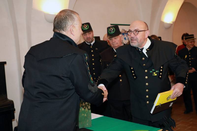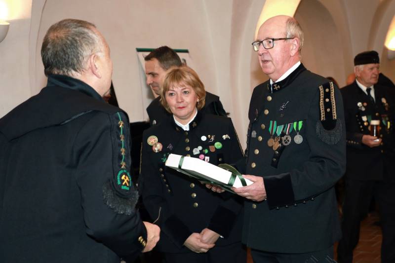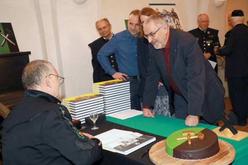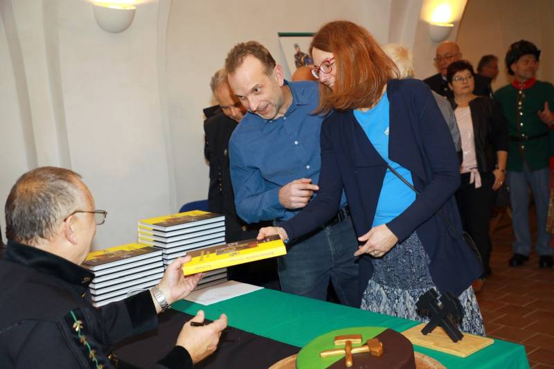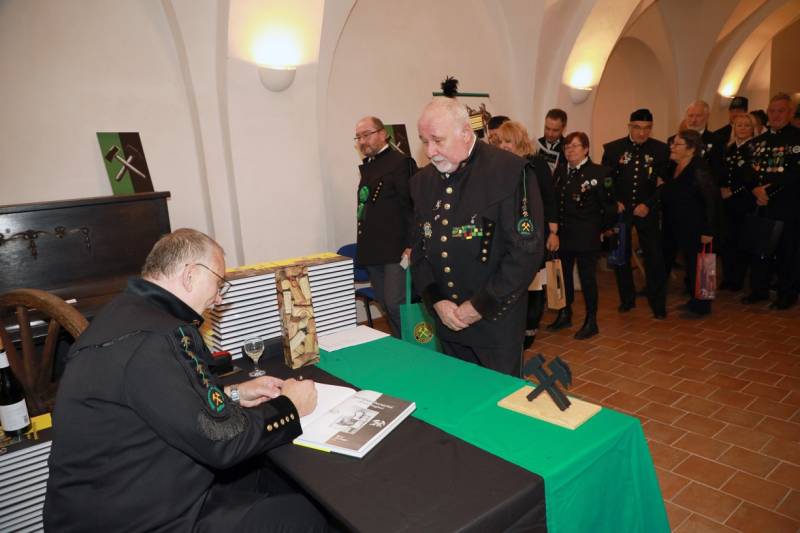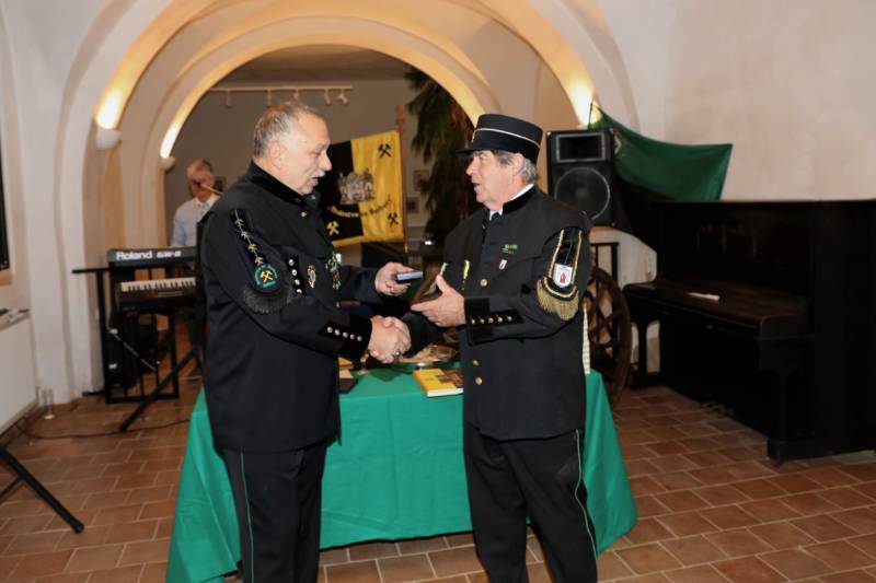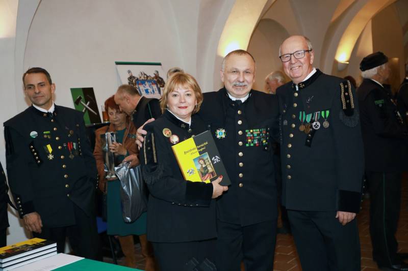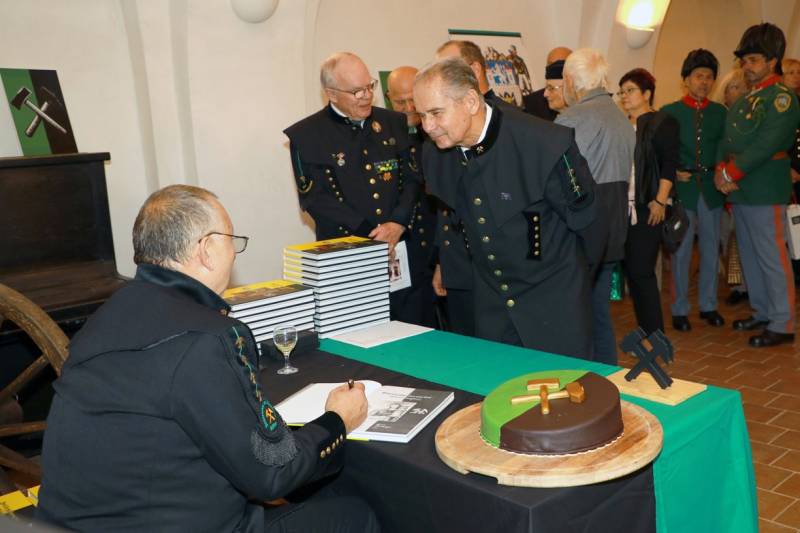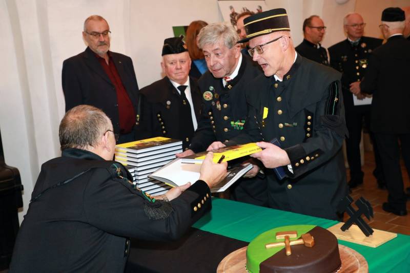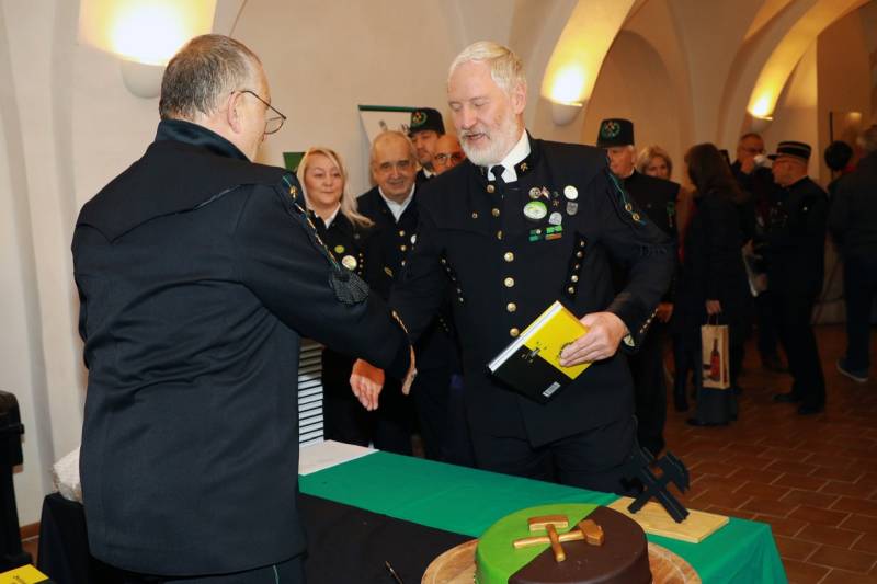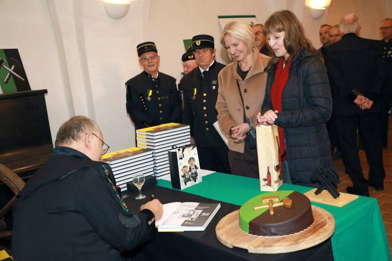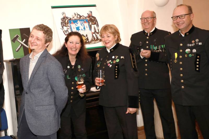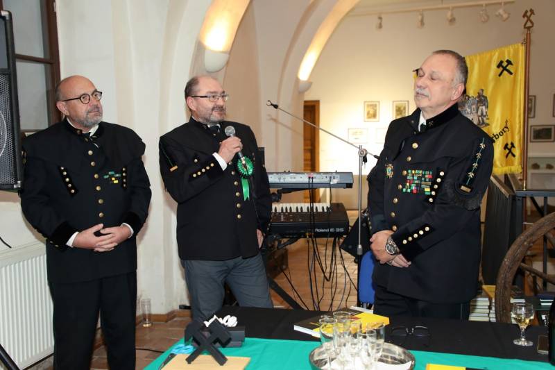 V sobotním odpoledni 8. listopadu 2025 ... ve stříbrském muzeu, opět po delší době, se začali scházet horníci z celých Čech, Polska (Rybnik) a Slovenska (Lubietová, Banská Štiavnica) z důvodu křtu knihy „Stříbrské hornictví – Mieser bergbau“ z pera Karla Neubergera. Autor se může pochlubit, že je to jeho již 18 publikace o historii našeho královského horního města a stříbrského rudního revíru. Málokdo ze současných obyvatel ví, proč naše město vzniklo, co bylo u jeho zrodu důležitým počinem. Samozřejmě to bylo objevení ložisek stříbrné, olověné a zinkové rudy. V našem okolí se rudy dobývali více než 8 století. Ruda byla dopravována do Kutné Hory, do Českého Krumlova, do Jáchymova a dalších měst. Kmotry knihy byli, autorovo dcera Eva se svým synem Josephem, Ing. Fiala, J. Špalek, E. Sombathy a M. Hakl. Na začátku akce autor všechny přítomné přivítal, poděkoval sponzorům, městu Stříbru, starostovi města M. Záhořovi a nesmíme opomenout autorovo manželku Alenu. Samozřejmě se nezapomnělo na hornickou hymnu „Hornický stav budiž velebený …“. K poslechu všem zahrál po celý večer J. Schimmer. Bratrstvo vyznamenalo svého člena V. Nejedlého Evropskou montanistickou medailí. Dále byli naší medailí vyznamenáni Kamil Šmida – předseda OBÚ v Plzni, S.Jelen z Lubietové a P. Zajac – starosta bývalého královského horního města Lubietová a V. Součka – ředitele městských lesů za trvalou podporu. Náš spisovatel obdržel vyznamenání od hornického spolku Severočeských havířů a od Združení banických cechů a spolků Slovenska. O raut se postaralo jako vždy Gastro Zlatý kalich. A jako tradičně nás po dobu večera se snažila zvěčnit paní Trávníčková. Děkujeme řediteli muzea panu Šimkovi za umožnění akce v prostorách muzea. PO dlouhé době bylo naše muzeum zcela zaplněno, tím jsem chtěl říci, že omluvenek bylo poskrovnu. Přejeme publikaci zdařilí vstup do života. Akce se zdařila a již nyní se těšíme na další. Na konci listopadu nás čeká hornická paráda v saském Chemnitz. Zdař Bůh Dne 10.11.2025:Karel Neuberger Pro reakci na článek musíte být přihlášen |