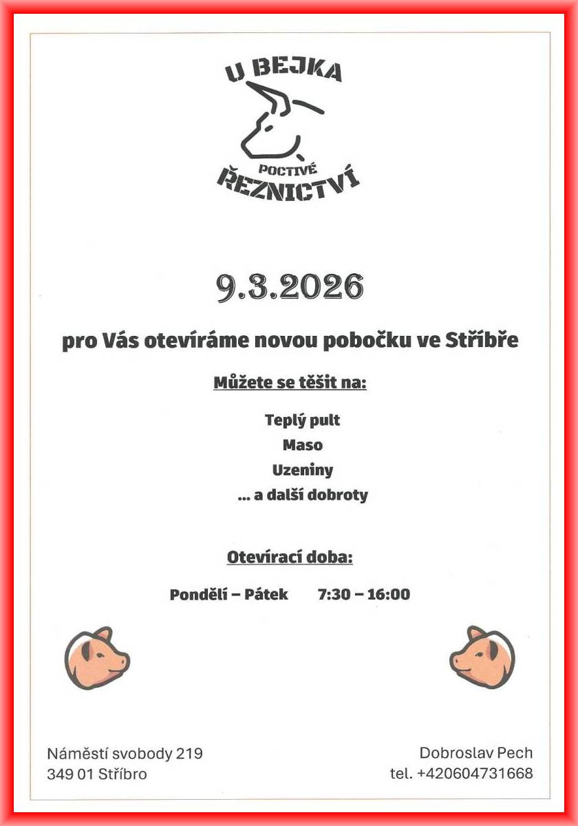 9.3.2026 pro Vás otevíráme novou pobočku ve Stříbře, náměstí Svobody 219.
