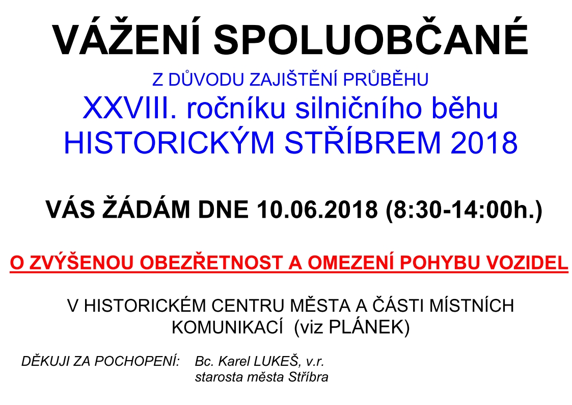 Srdečně Vás zvu, ať jako aktivní sportovce a jejich příznivce, či jen jako diváky jejichž přítomnost závodníky vždy velmi potěší, na tuto akci se začátkem dne 10. června 2018 od 08:45 hodin na Masarykovo náměstí v historickém centru města Stříbra a v jeho blízkém okolí.