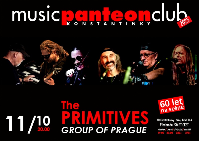 Dne 11.10.2025 v 20:00 Legendární The PRIMITIVES Group slaví 60 let na scéně – a my slavíme s nimi! Hudba, která vás pohltí – energie, co vás nepustí! Legendární skupina, která odstartovala československý psychedelický rock. Zrodili se už v roce 1964 jako Primitivové, ale s příchodem manažera Eugena Fialy a rokem 1967 přišel nový název – The PRIMITIVES Group. Na pódiu jako první u nás odpálili ohně, kouř a syrovou psychedelii. Vystřídala se u nich jména, která rezonují rockovou historií: Hráli skladby legend jako: Dnes jsou The PRIMITIVES Group živelnou blues-rockovou jízdou s duší – připomínají kultovní americké Grateful Dead: Frontman Ivan Hajniš, který zažil světové jazzové velikány, přinesl kapele zcela novou energii – a i po 60 letech je to živá rocková legenda, co vás zvedne ze židle. otevřeno od 19:00 | koncert od 20:00 Předprodej ZDE Nepřijďte o hudební událost podzimu!