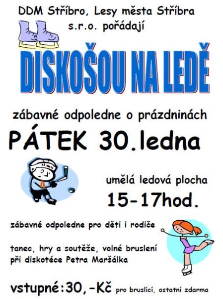 Dne 30.01.2015 Přijďte si o pololetních prázdninách zařádit na lední diskošou. Zábavné odpoledne pro děti a rodiče - tanec, hry a soutěže, volné bruslení při diskotéce Petra Maršálka. Umělá ledová plocha od 15 hod. Vstupné 30,- pro bruslící, ostatní zdarma. Autor: Jitka Slívová Pro reakci na článek musíte být přihlášen |